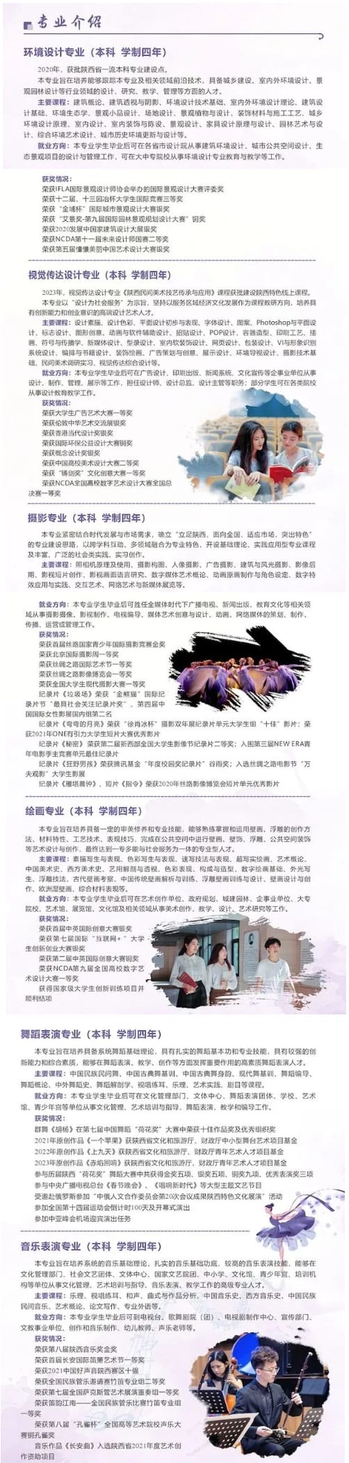 西安建筑科技大学华清学院艺术与设计学院设有环境设计、视觉传达设计、摄影、绘画、舞蹈表演、音乐表演等六个专业。2020年,环境设计专业获省级一流本科专业建设点。陕西音乐文物乐舞壁画复原项目获批2021年陕西省普通高校中华优秀传统文化传承基地。2023年,《陕西民间美术技艺传承与应用》课程获批建设陕西特色线上课程。